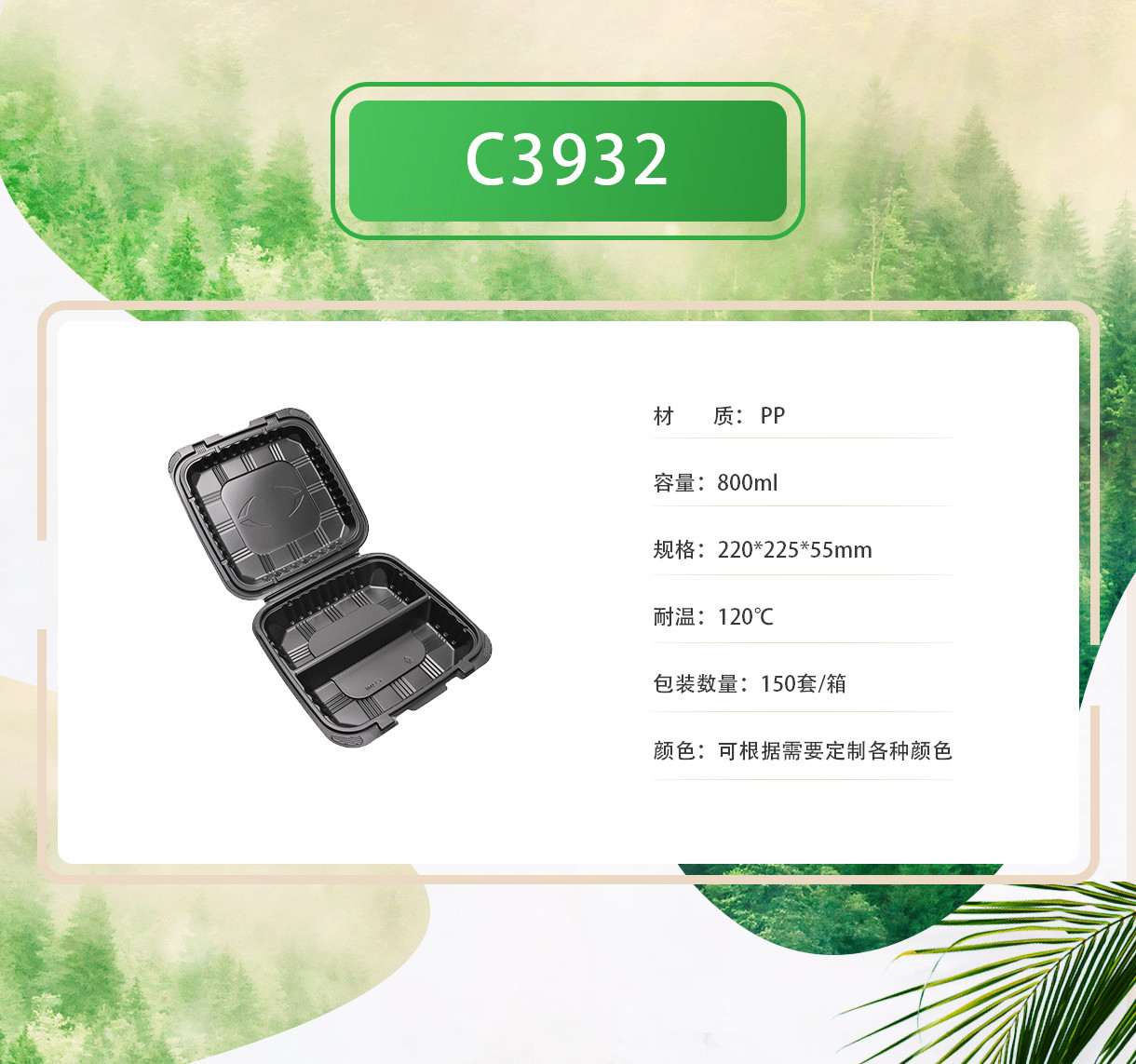 一次性pp饭盒带盖封口黑色方形两格格快餐盒